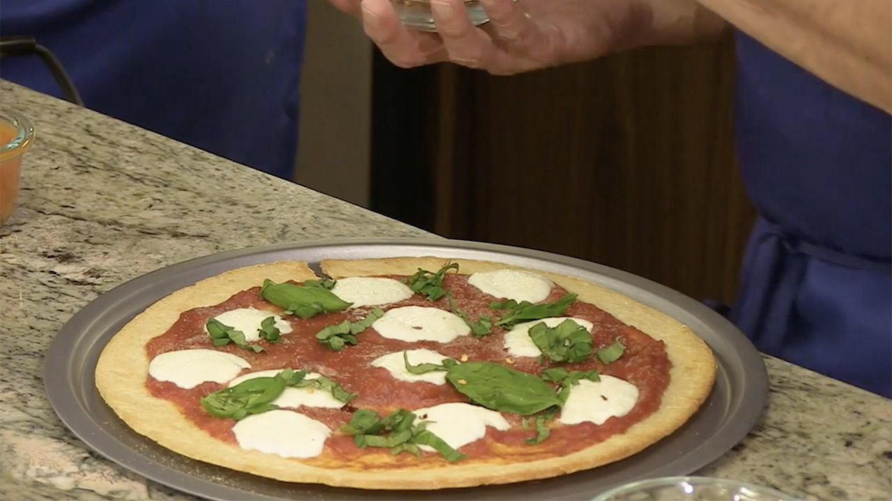 2. Lightly brush virgin olive oil on crust